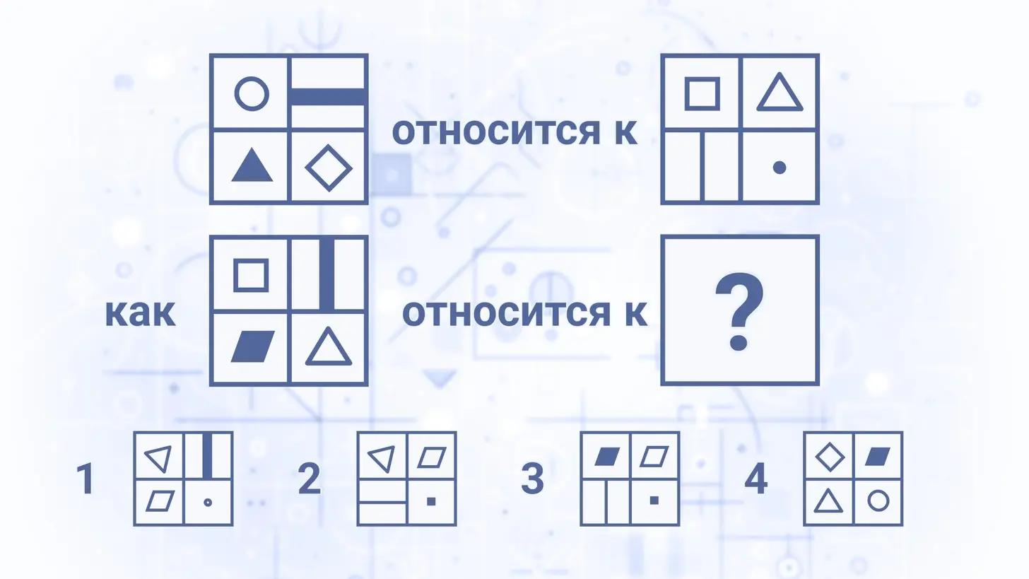 Такие вопросы — классика тестов на IQ. Получится у вас определить, какая картинка должна стоять в вопросе?