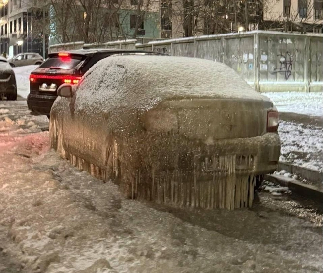 «Вода течет не первый день. У нас тут настоящий поток и айсберги. А машины вмерзли в лед и стали частью зимнего пейзажа. Ситуация не меняется несколько дней: коммунальщиков мы не видим. „Каток“ только растет и крепнет», — рассказали жители окрестных домов.