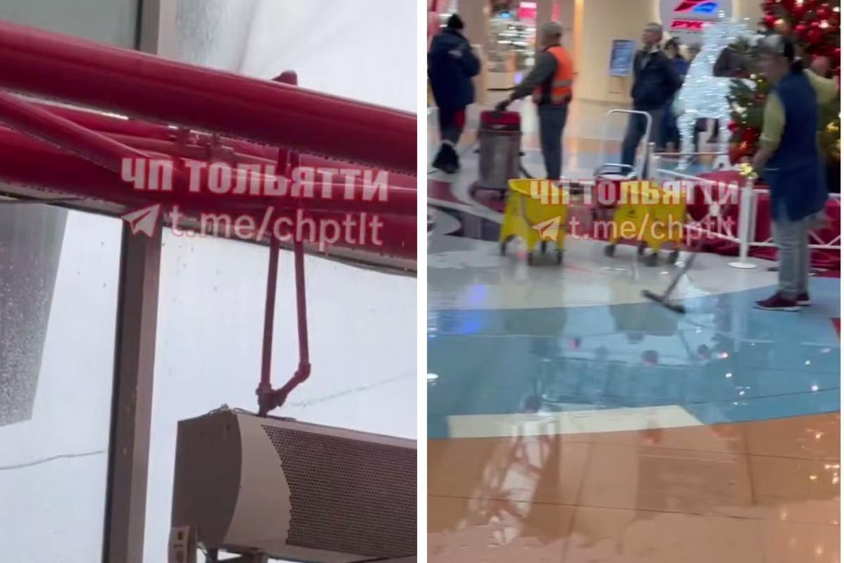 В торговом центре «Русь» Тольятти с потолка хлынул водопад — видео ЧППотоки полились с крыши молла