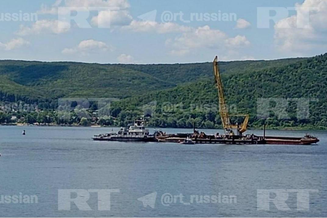 «Она просто перевернулась»: под Самарой начали доставать затонувший плавучий домик — видео