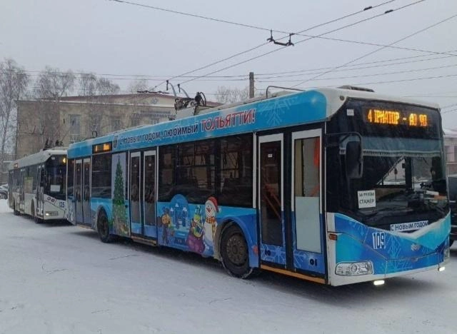 Новогодним настроением тольяттинцев заряжают троллейбусы. Они курсируют по всем района автограда